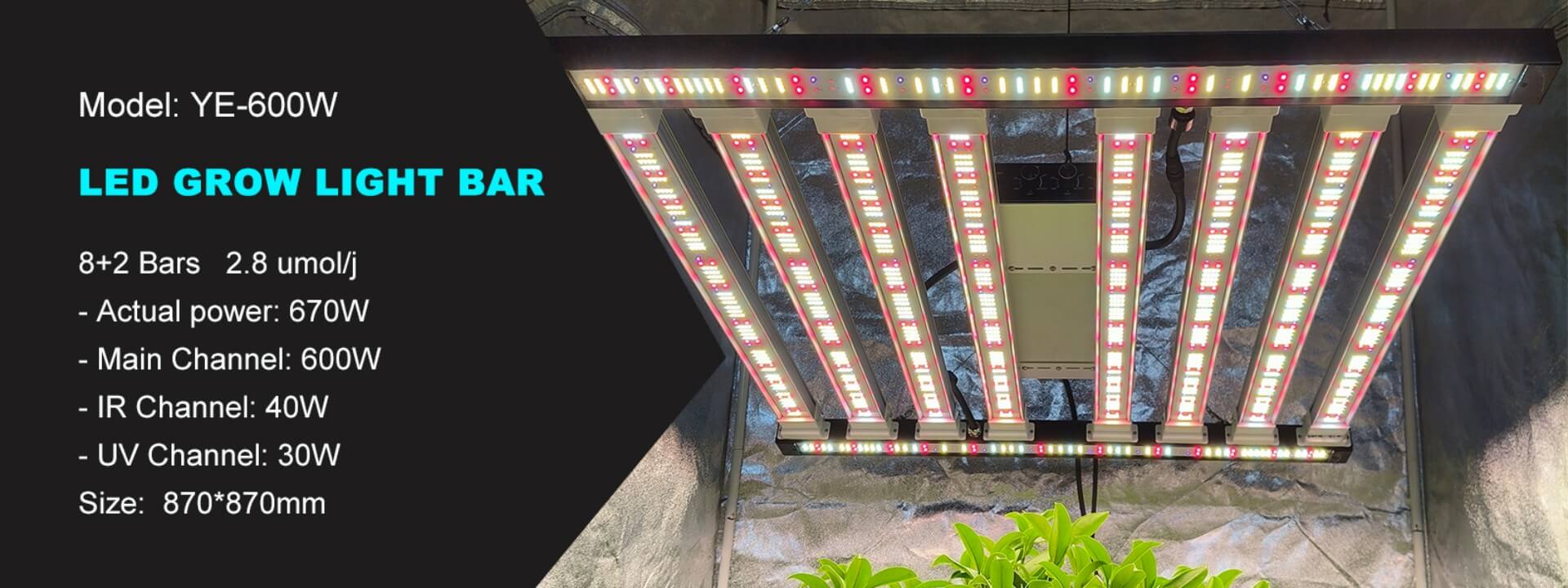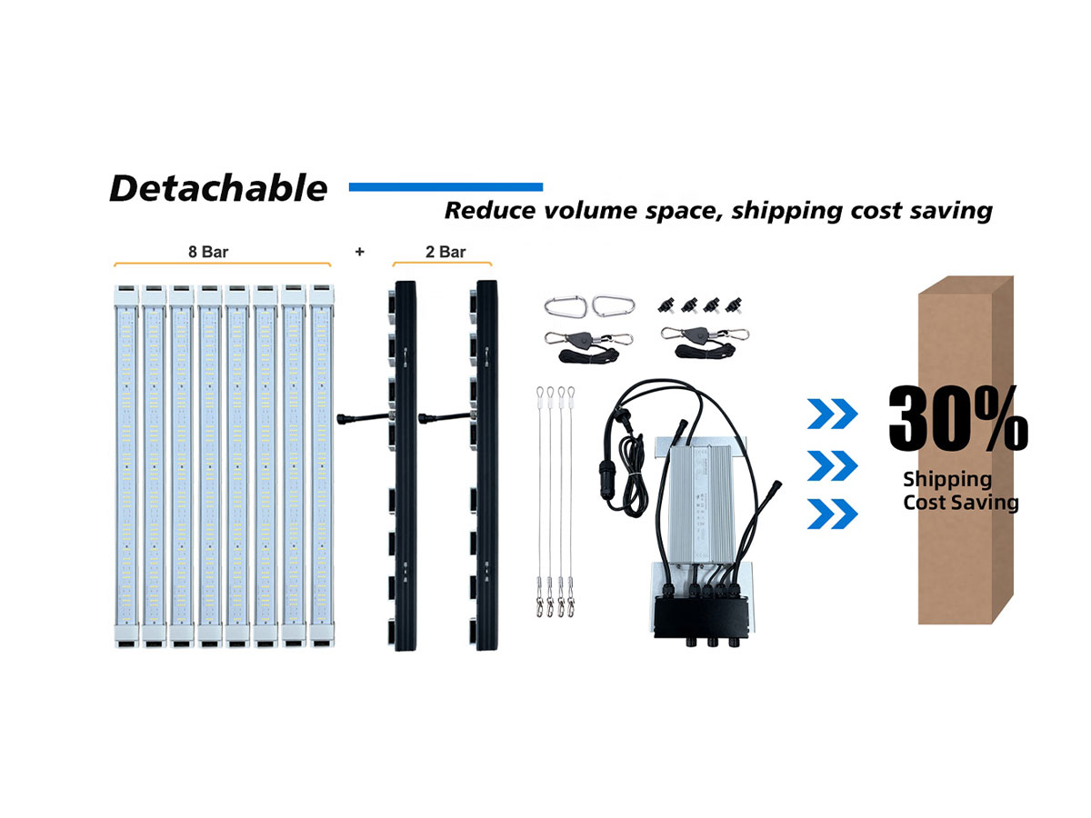 8+2 Bars Grow Light | 3-Channel Control | Genuine Samsung Lm301H EVO | High Efficiency -2.85umol/j | Well-balanced PPFD, 4-side Lighting Emitted | Quick-plug Structure, Easy to Install & Maintenance | Detachable design, Saving Shipping Costs