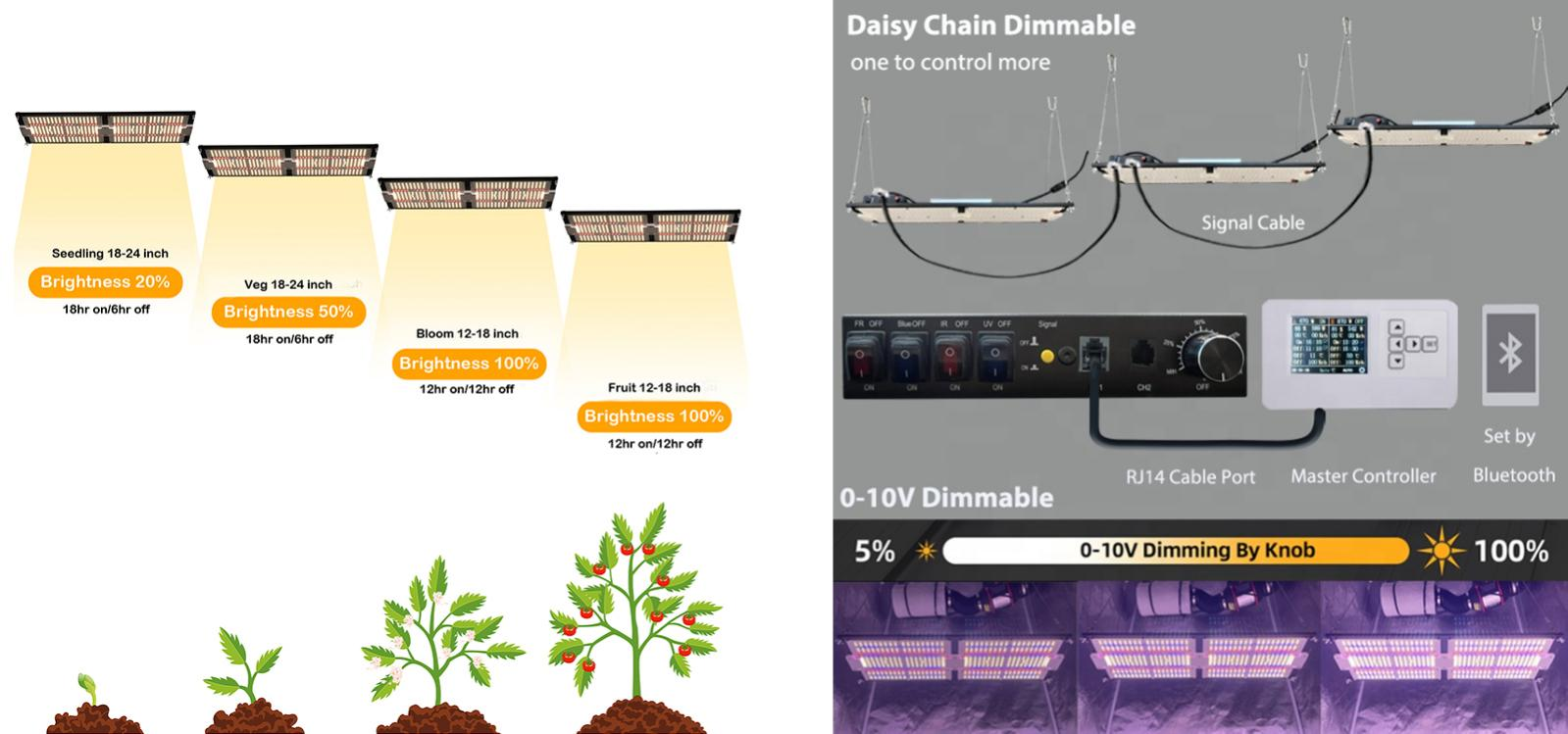 >>> 0-10V Linear Dimming for seamless brightness adjustment, saving up to 30% energy while delivering optimal PAR output.