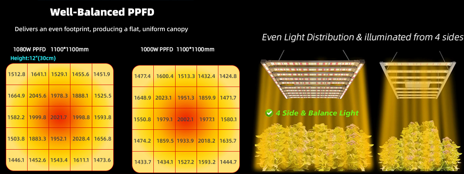 Best Indoor LED Grow Lights with 4-Sided Balanced PPFD, 3 Channels, and Quick Plug Design