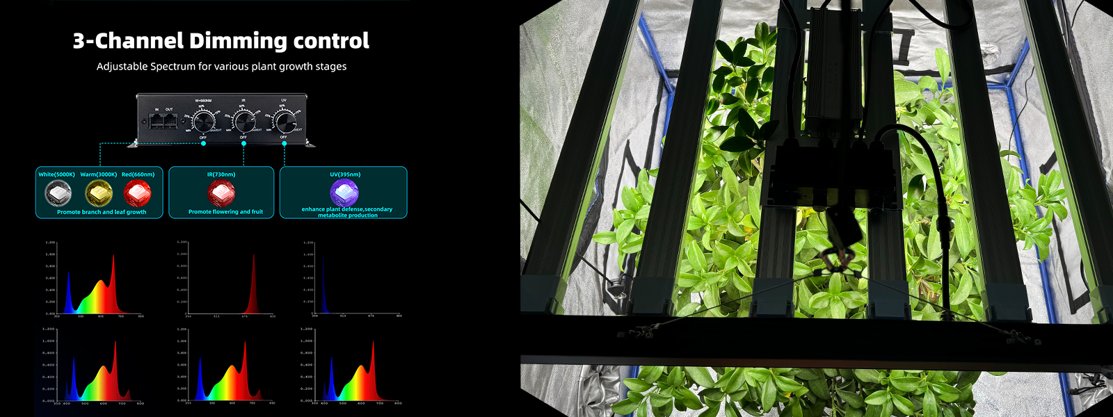 Led Grow Light Bar--3 Channel & 4 Side Balanced PPFD Distribution |