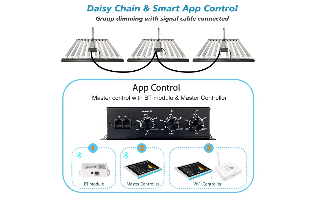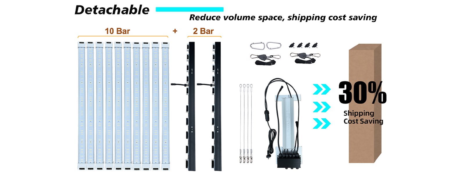 12 Bars Grow Light | 3-Channel Control | Genuine Samsung Lm301H EVO High Efficiency - 2.85umol/j | Well-balanced PPFD, 4-side Lighting Emitted | Quick-plug Structure, Easy to Install & Maintenance Detachable design, Saving Shipping Costs
